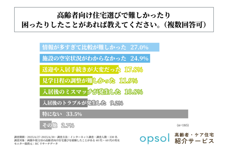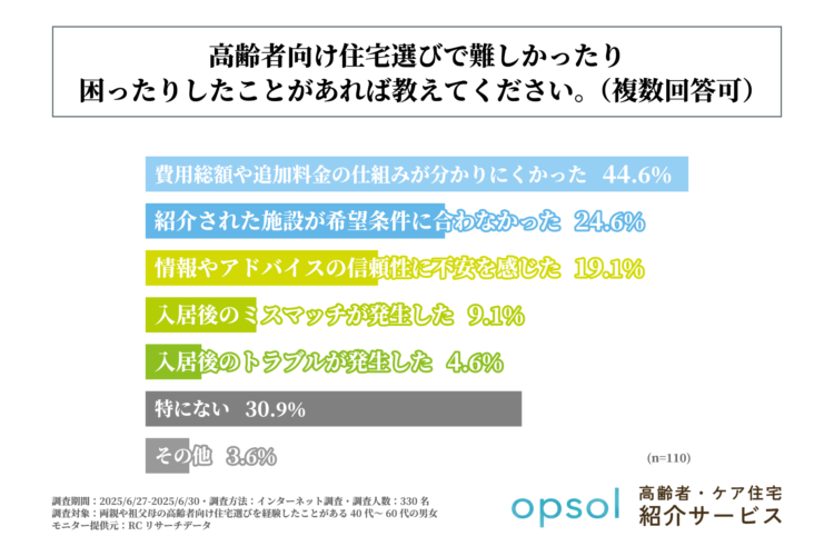 逆に、3人に1人は自分で選んだ老人ホームや高齢者向け住宅に不満を感じているという結果になった。